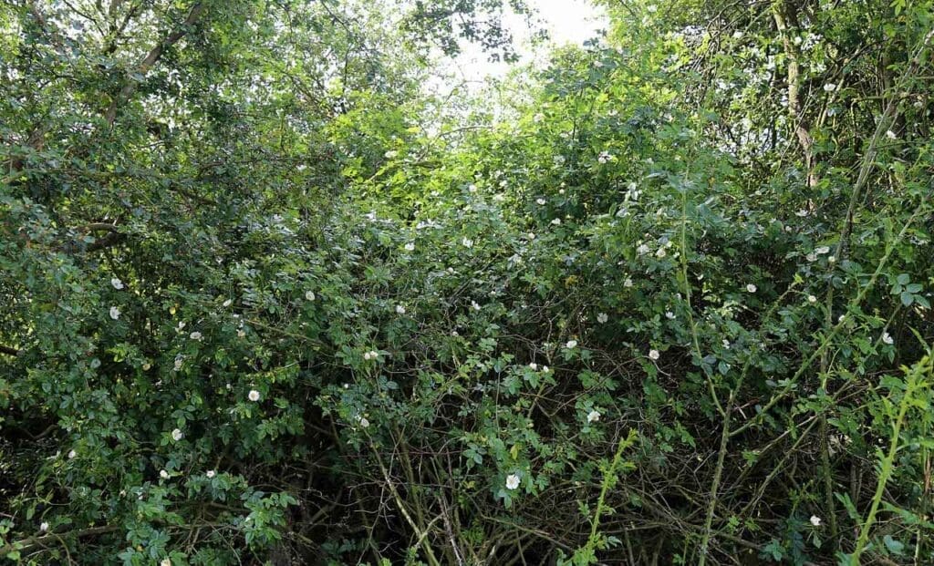 Dog rose grows, or ‘rambles’ up to 3m tall. It doesn’t often reach this height as the branches tend to arch over.