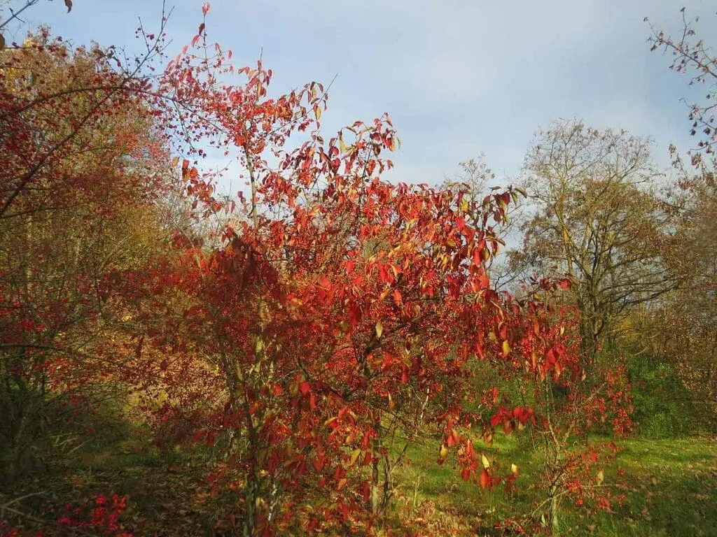 They are elliptical with fine teeth on their edges. In the autumn, spindle can be readily identified by its intense red colouration.