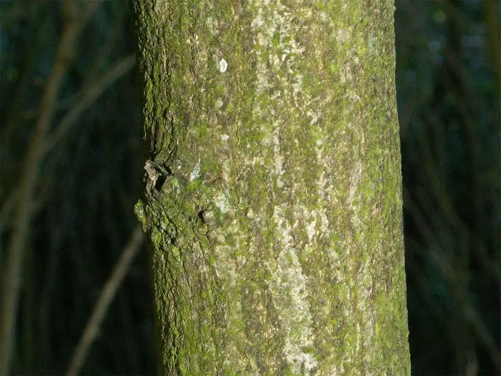 The young bark is smooth and greenish. When the tree ages a little the bark becomes grey with vertical stripes.