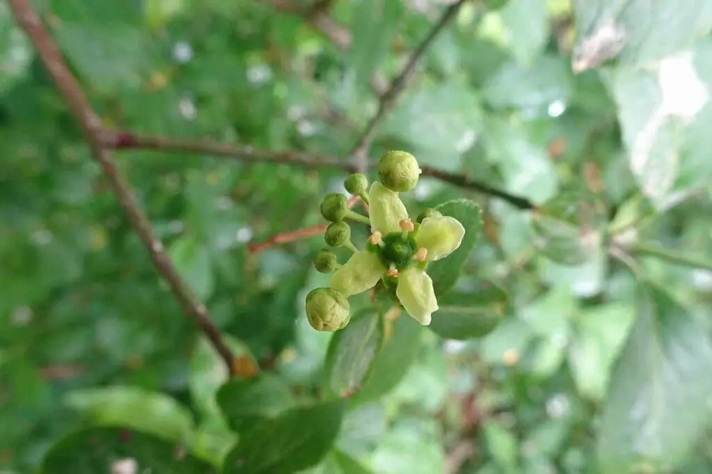 At the base of the tiny inconspicuous flowers is a ring-shaped bulge. On this bulge is a morsel of nectar that attracts insects to help with pollination. The flowers appear in May and June.