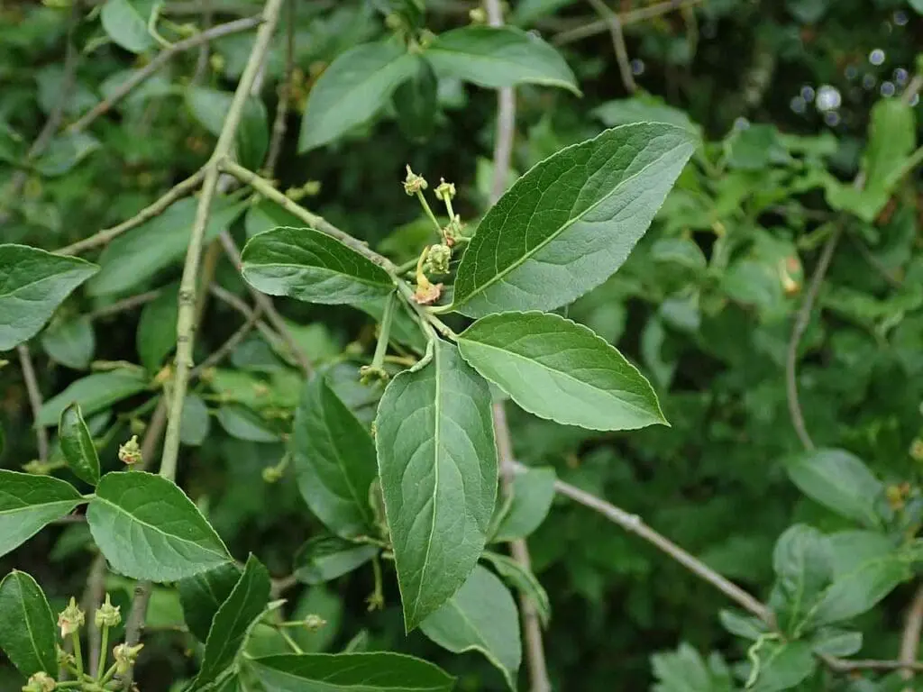 Spindle’s leaves appear at the same time as the flowers in May and June.